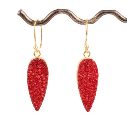 Longue larme balancent boucle d'oreille naturel rouge sucre druzy crochet goutte boucle d'oreille laiton or plaqué tranchant pour les femmes déclaration gouttes