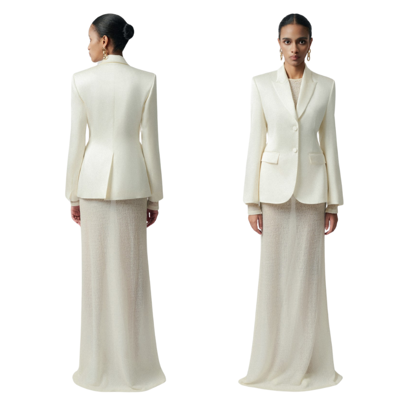 Long Women's Skirt Black & White Era Wool Lacy Jacquard Skirt Lined Side Zipper Formal Elegant WHITE ANT Sets for Women Vietnam