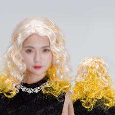 Long capuchon de perruque à boucles bicolores jaune S9628302 Style de vague naturelle sans colle en fibre haute température