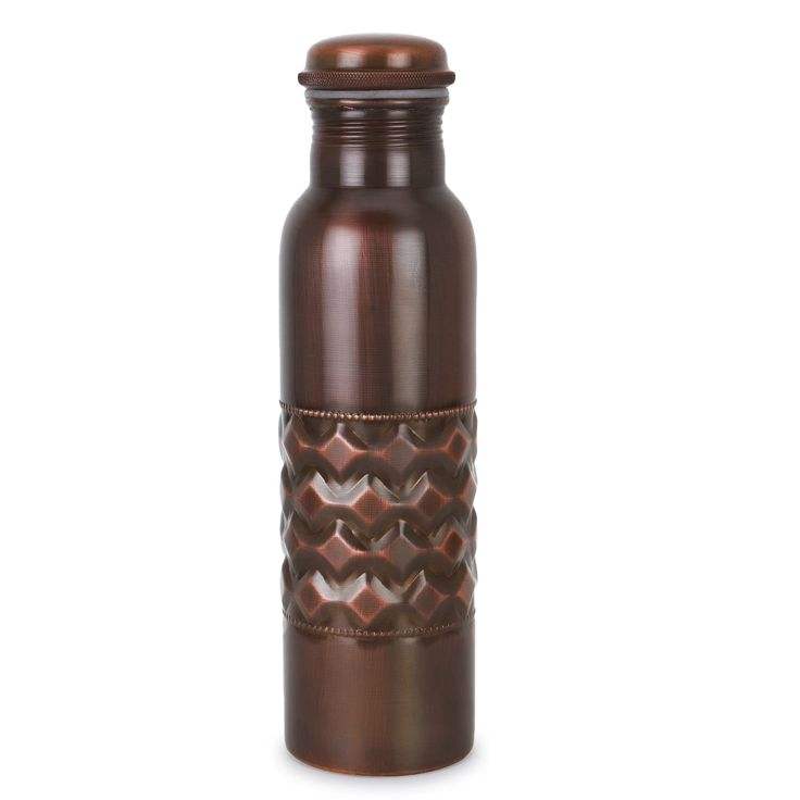 Bouteille en cuivre de longue durée avec couvercle étanche esthétique vintage et pouvoirs de guérison ayurvédique pour une hydratation naturelle