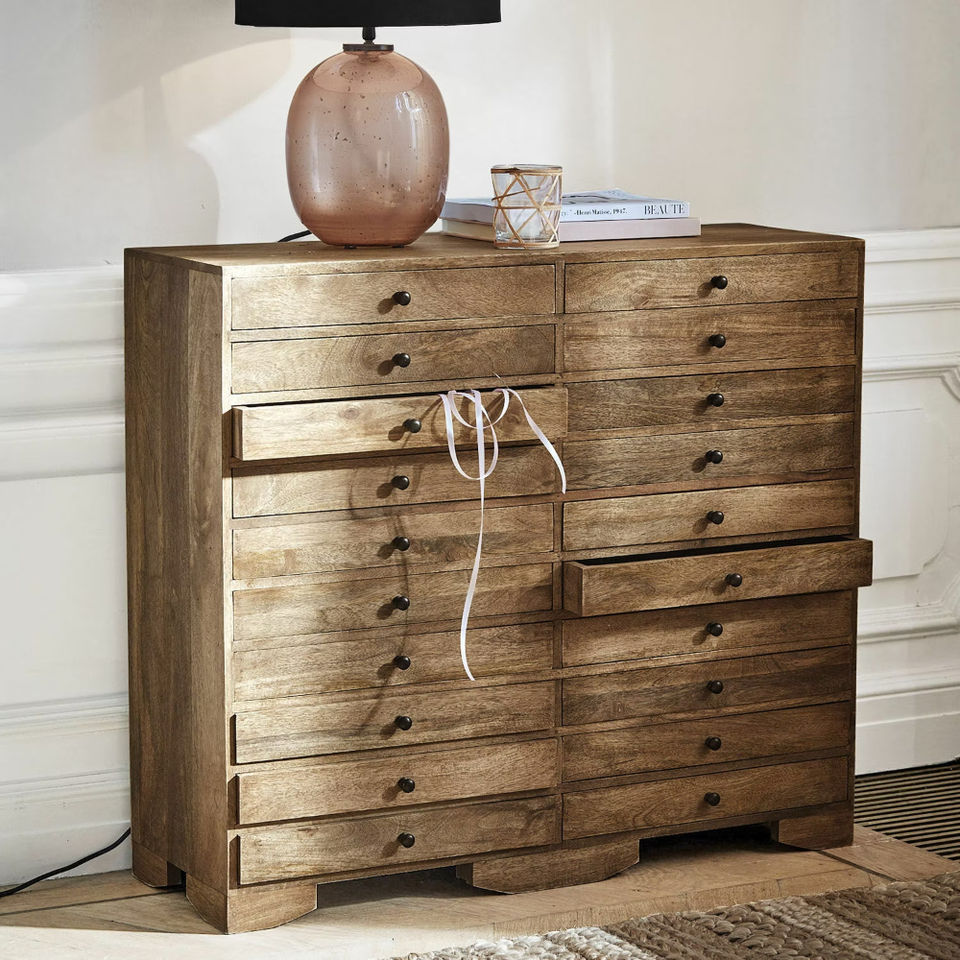 Longue nouvelle armoire de rangement en bois mangue et bois dur d'acacia style rustique indien artisanal fabricant OEM prêt à l'exportation