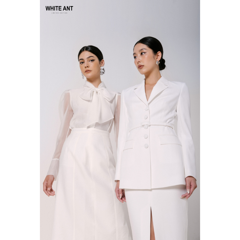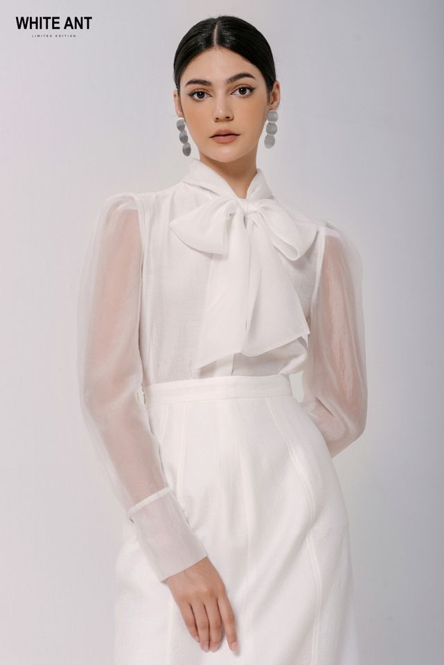 Long-sleeve White Women's Blouses & Shirts Bow Neck NOAM BOW SHIRT 73% Cupra 27% Polyester Formal Clothes for Women From Vietnam