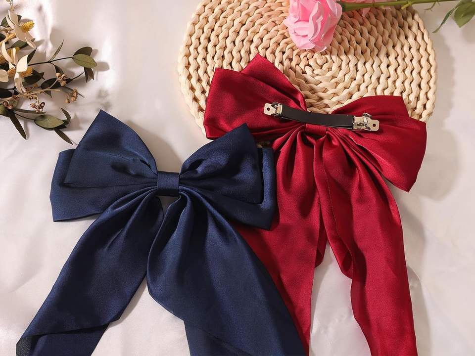 Accessoire nœud papillon long à la mode pour femme, à fixer à l'arrière de la tête, avec pince