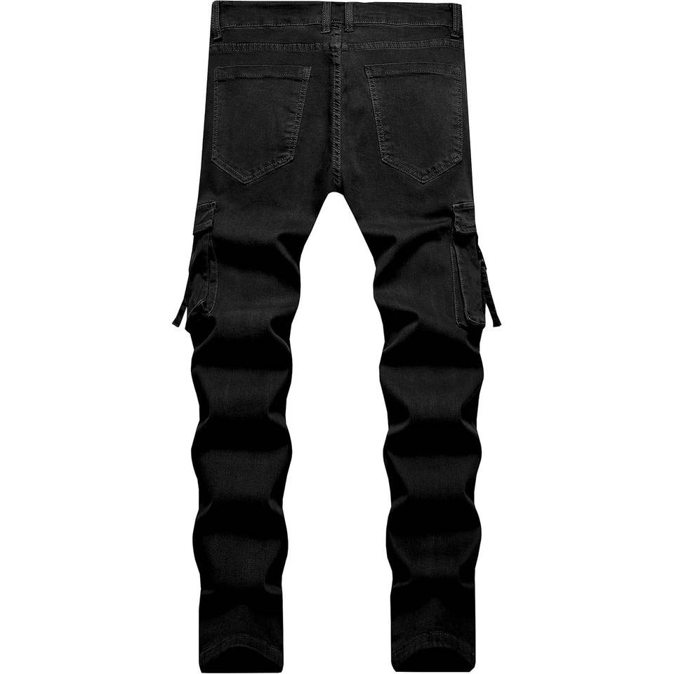 Longbida Jean motard cargo extensible coupe ajustée et confortable pour homme Design multi-poches