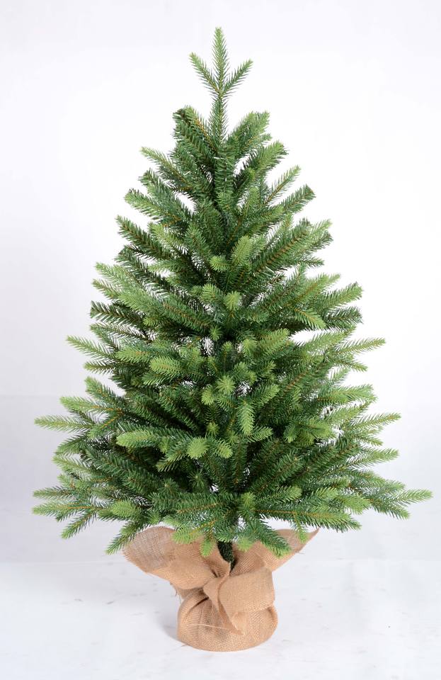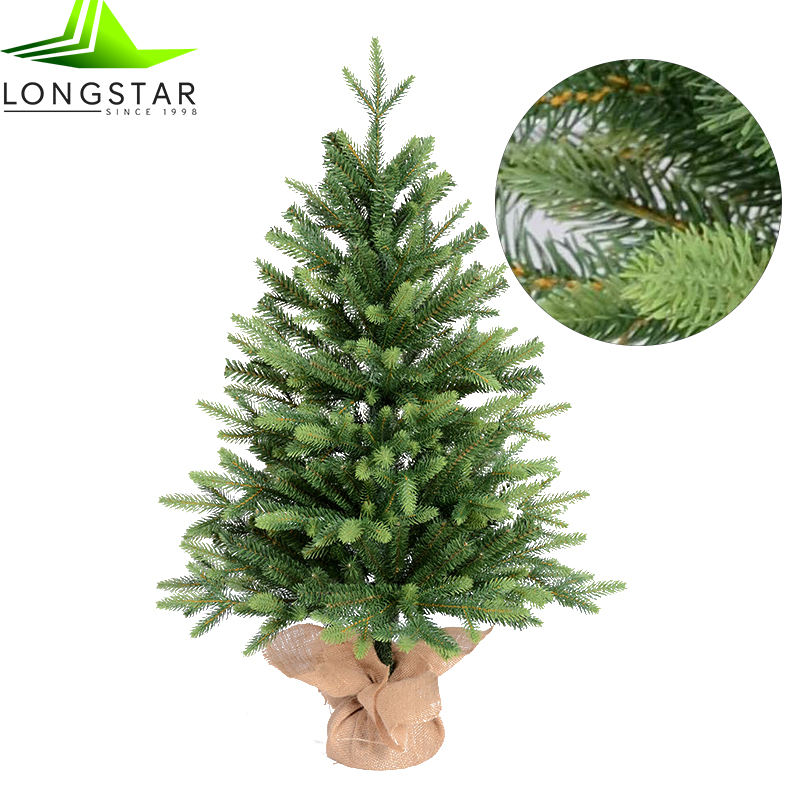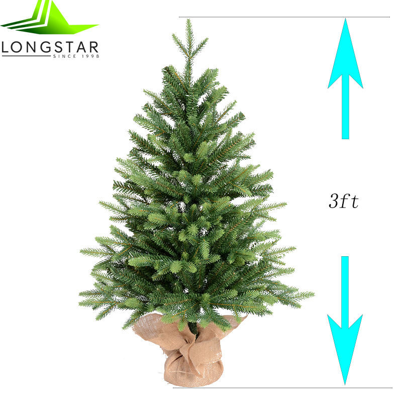 Mini sapin de Noël artificiel pré-éclairé Longstar | Comprend de petites lumières et une base de sac en tissu | Sapin majestueux-2 pi