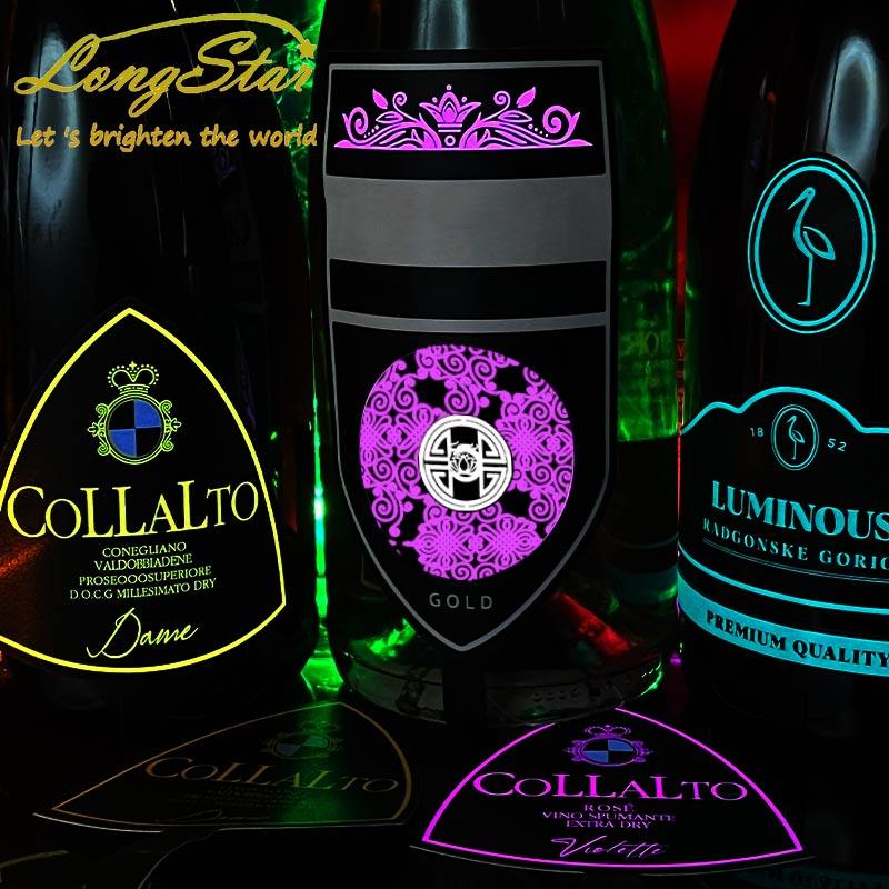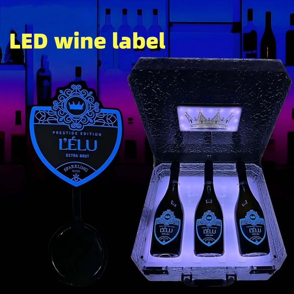 Longstargift personnalisé haute brillance LED Champagne lumineux bouteille de vin lumière étiquette autocollant auto-adhésif PET pour fête nuit nouvel an