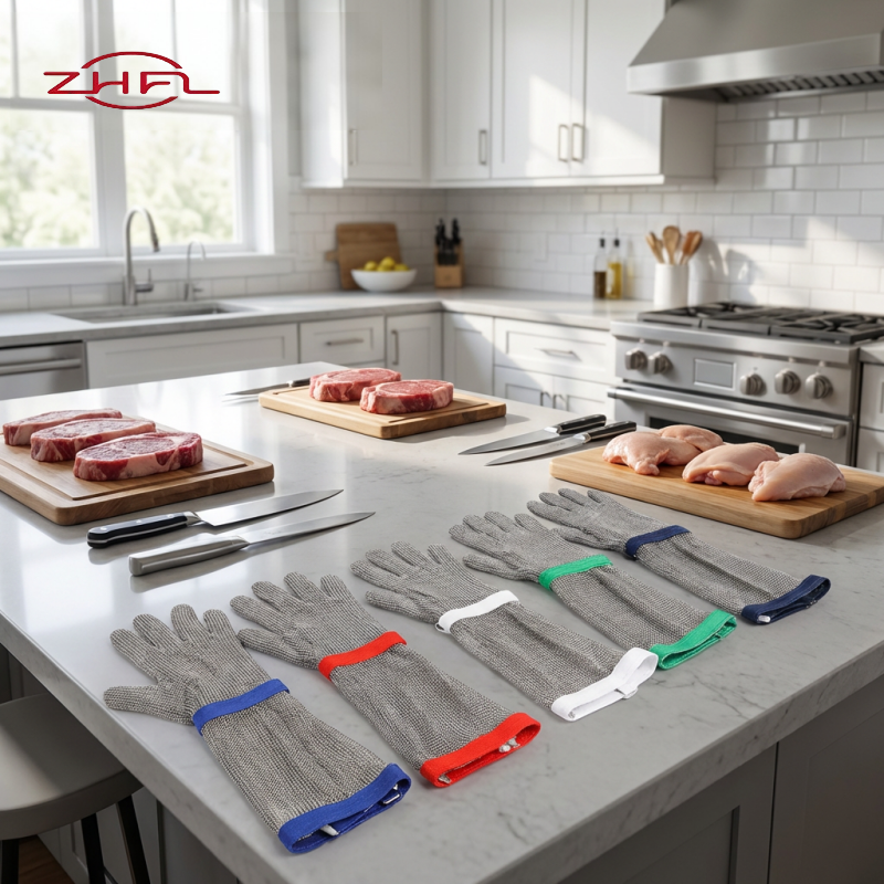 Gants de sécurité en maille d'acier inoxydable de qualité alimentaire Longteng, portables, économiques, résistants à l'abrasion, EN388 5 ANSI/ISEA 9