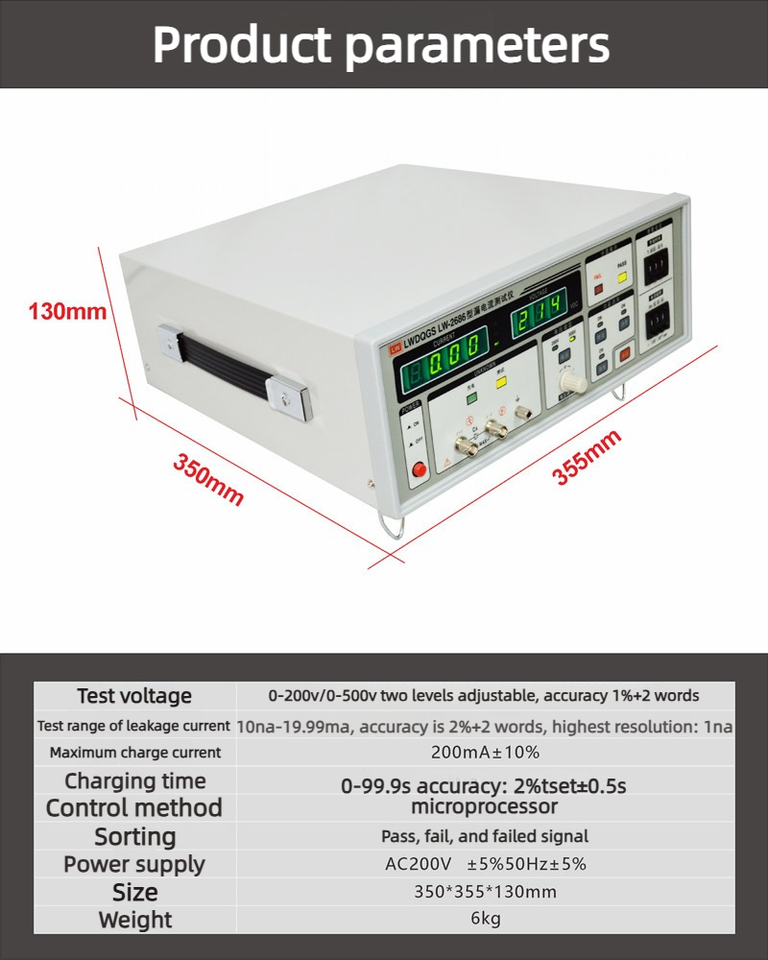Testeur de courant de fuite de condensateur électrolytique Longwei 2686, testeur de résistance de tension de fuite de charge 500V