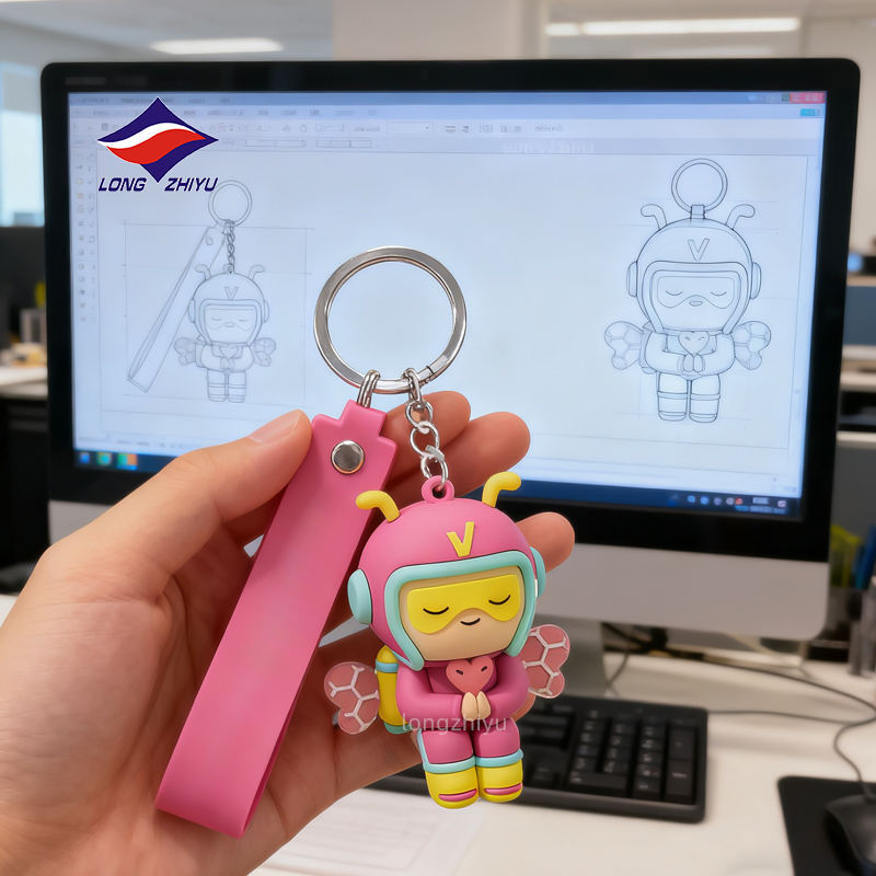 Longzhiyu, usine OEM depuis 20 ans, porte-clés en caoutchouc PVC 3D personnalisé, porte-clés de personnage mignon, style de dessin animé créatif, porte-clés cadeau
