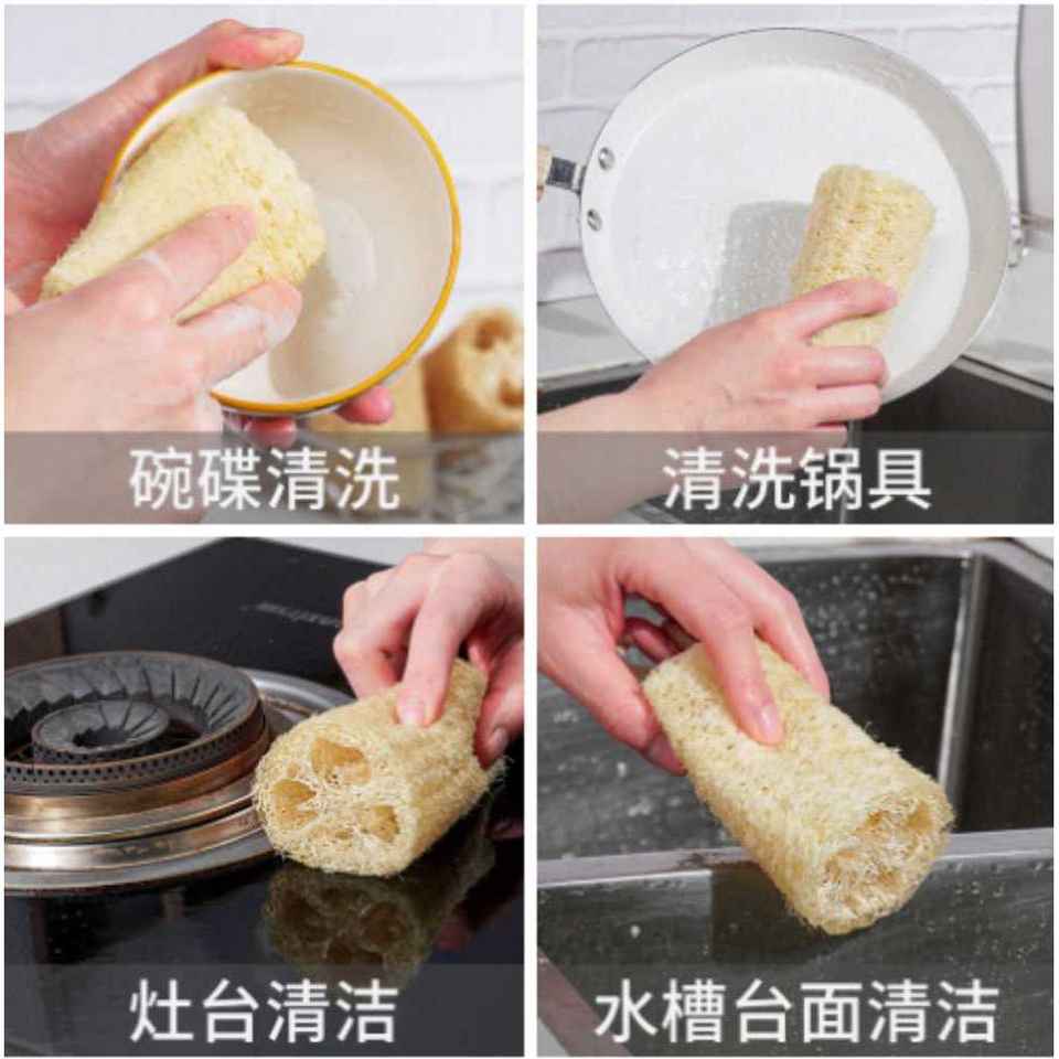 Éponges de loofah en segments pour le nettoyage de la cuisine, la vaisselle, le récurage des casseroles, le bain et le gommage corporel, usage domestique, couleur unie