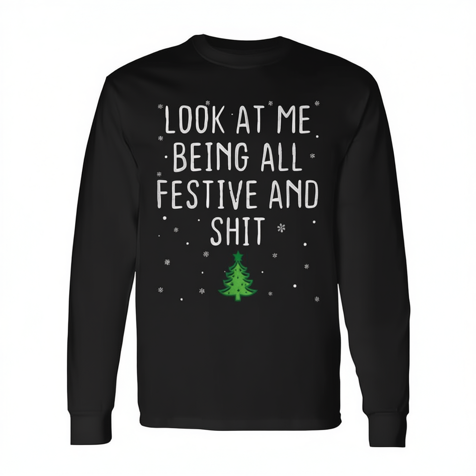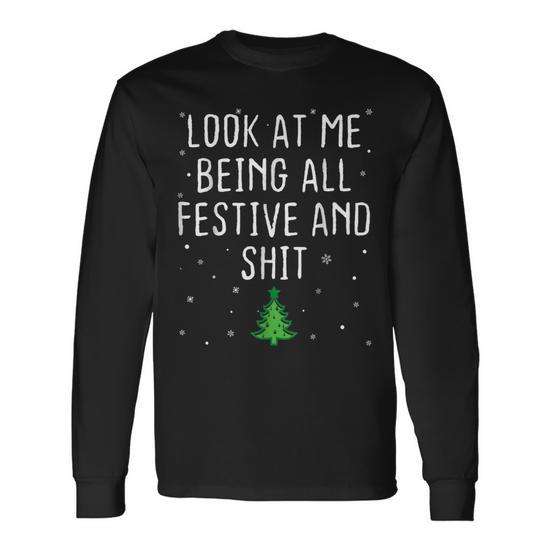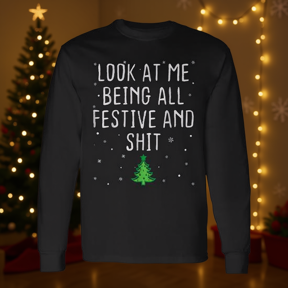 Regardez-moi, je suis tout en joie et festif, c'est drôle, t-shirt de Noël à manches longues