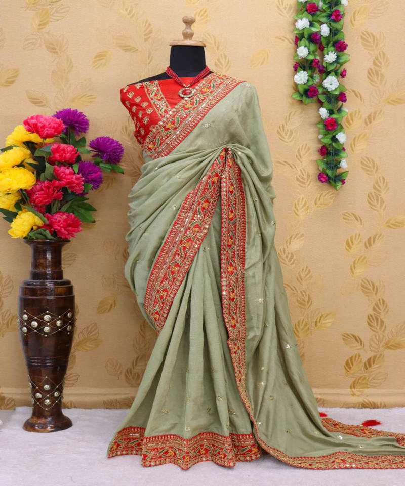 Regardez magnifique dans nos saris de travail de fil à broder en filet avec des motifs de blouses imprimés non cousus prix de gros