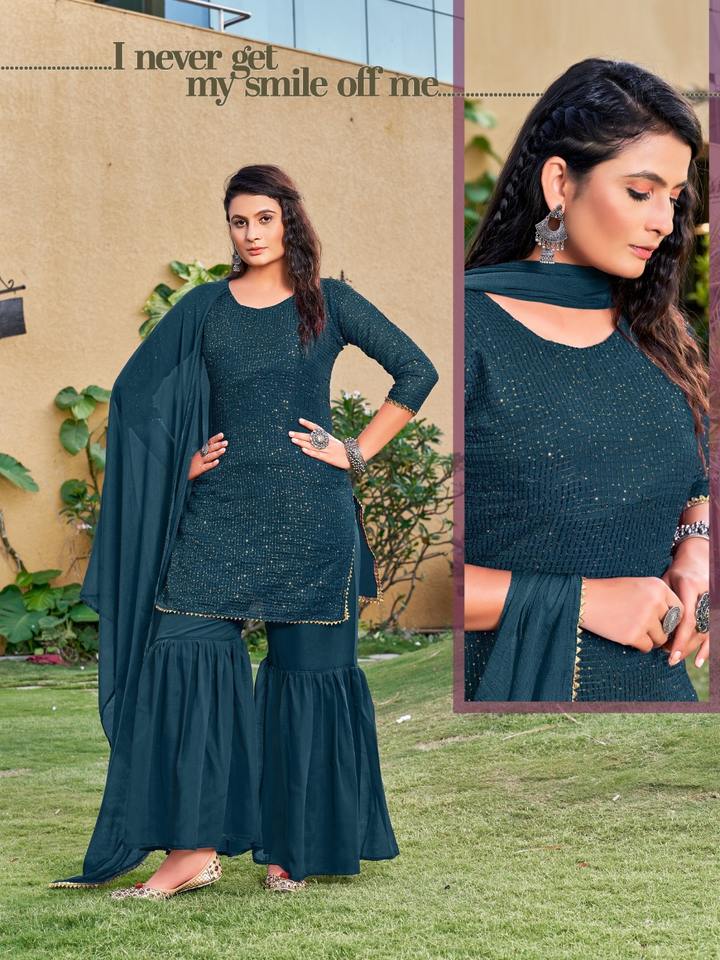 Tenue de soirée, similaire à une reine comme un coiffeur, Kurtis à coupe droite avec Dupatta, fausse Georgette, tissu avec broderie