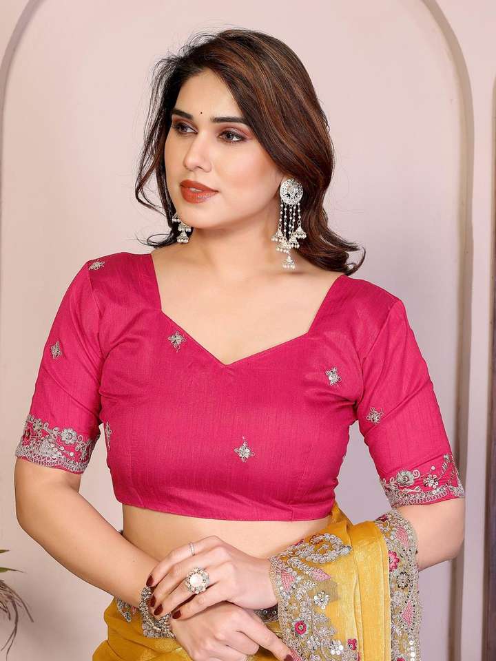 Je cherche un sari de la même couleur, magnifique, pour un mariage, en tissu de soie chiffon Fendy doux de qualité supérieure avec C-pallu.