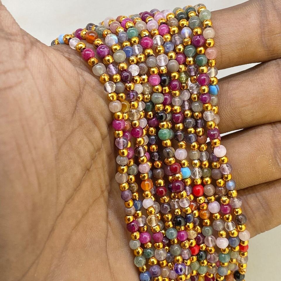 Perles en vrac multi-pierres rondes perle de pierre naturelle 4mm multicolore pour la fabrication de bijoux à faire soi-même à partir du fabricant, vente en gros