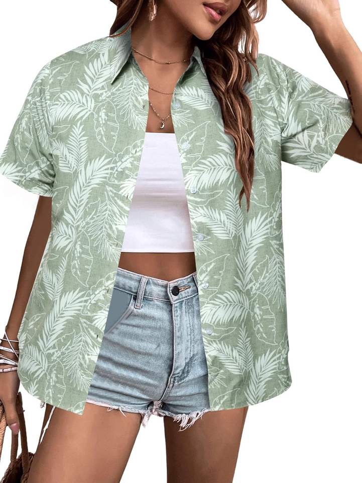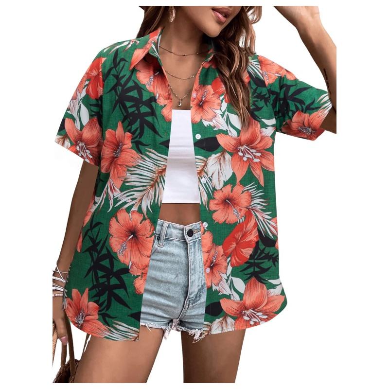 Chemise hawaïenne coupe ample doux Cool été Hawaii chemises Floral Tropic imprimé col en V T-Shirt à manches courtes boutonné hauts
