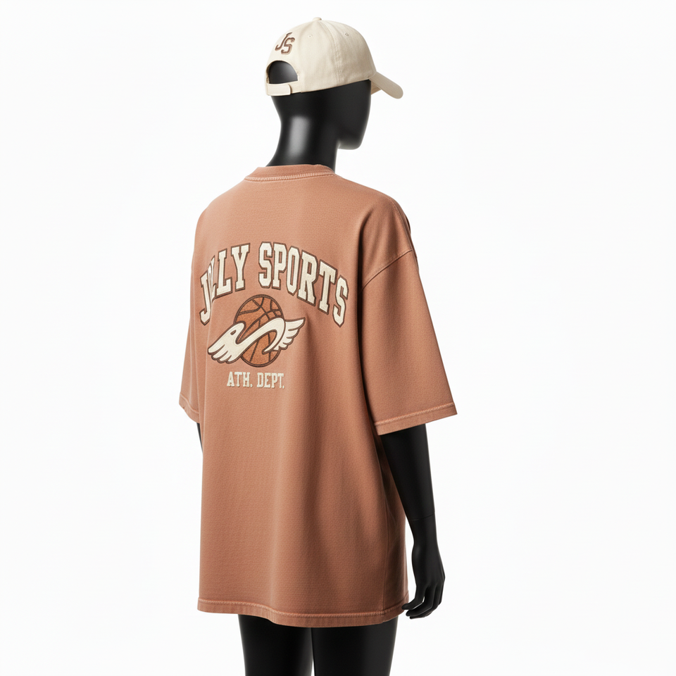 T-shirt ample pour homme, surdimensionné, en jersey de coton premium 240 GSM, vintage, lavé, imprimé pigment brun, logo personnalisé