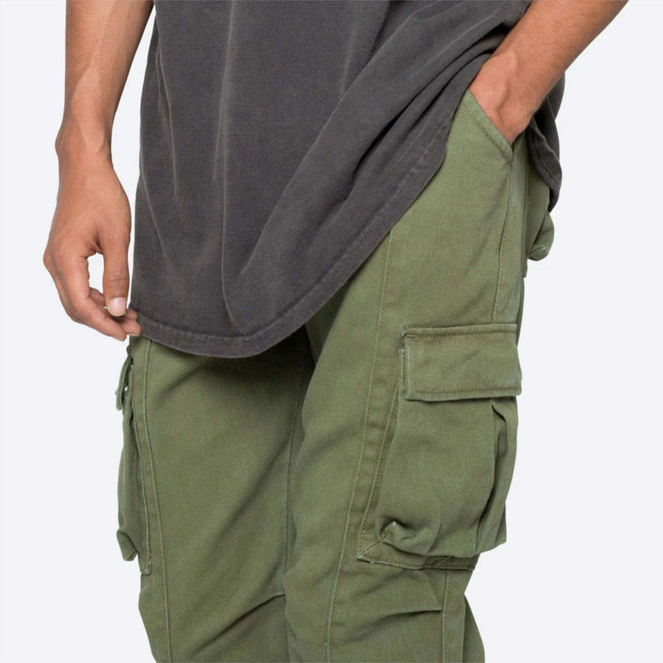 Pantalon cargo évasé ample pour hommes pantalon cargo respirant anti-rides en coton de couleur unie teint sur mesure pour hommes