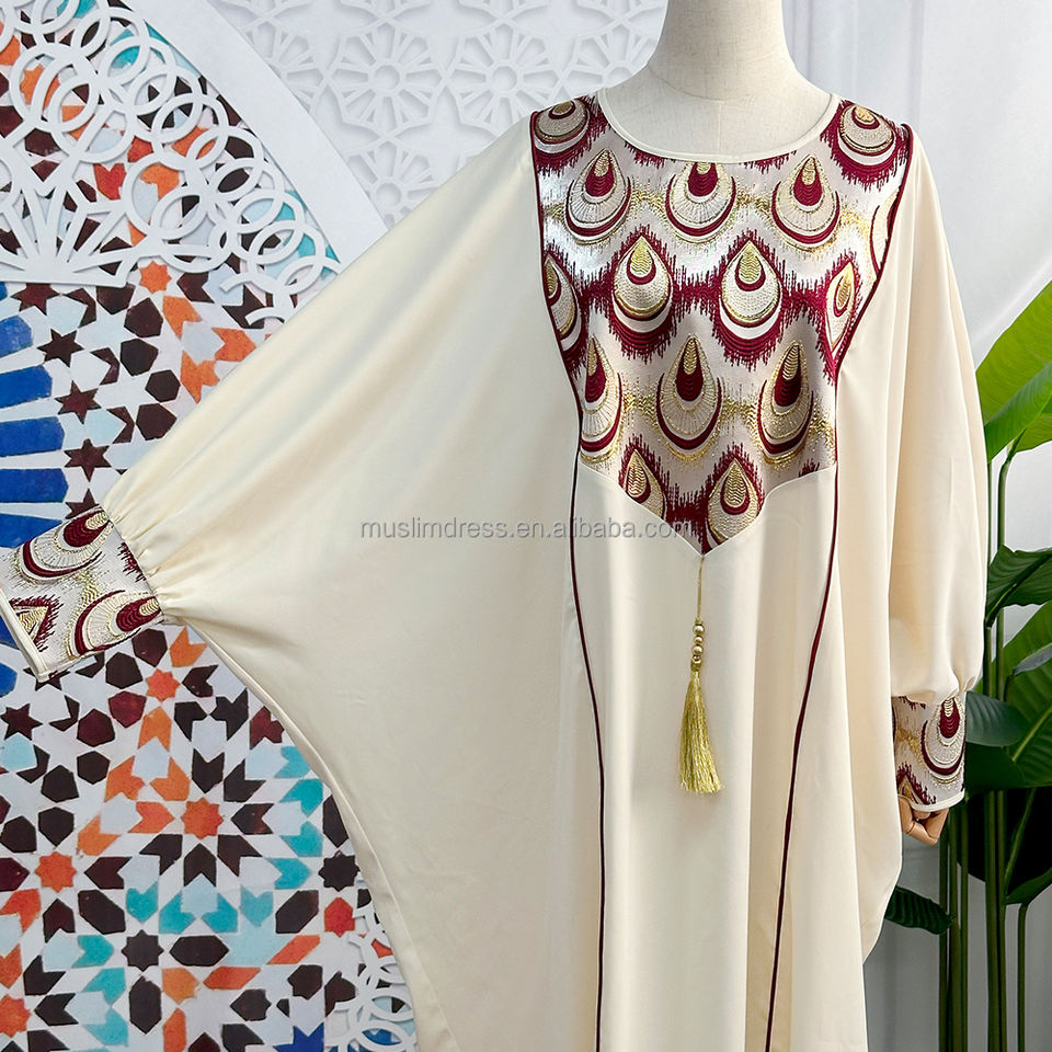 Robe ample imprimée Dubaï Turquie Kaftan Musulman à franges Manches chauve-souris Abayas Robes Femme Caftan Vêtements Islamiques