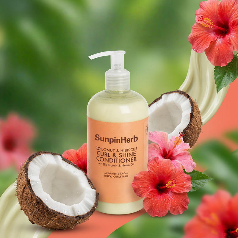 Après-shampoing hydratant et définissant les boucles à la noix de coco et à l'hibiscus avec protéines de soie pour cheveux épais, bouclés et crépus