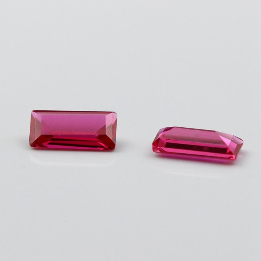 Pierres de rubis synthétiques en forme de rectangle de coupe baguette, rouge rubis