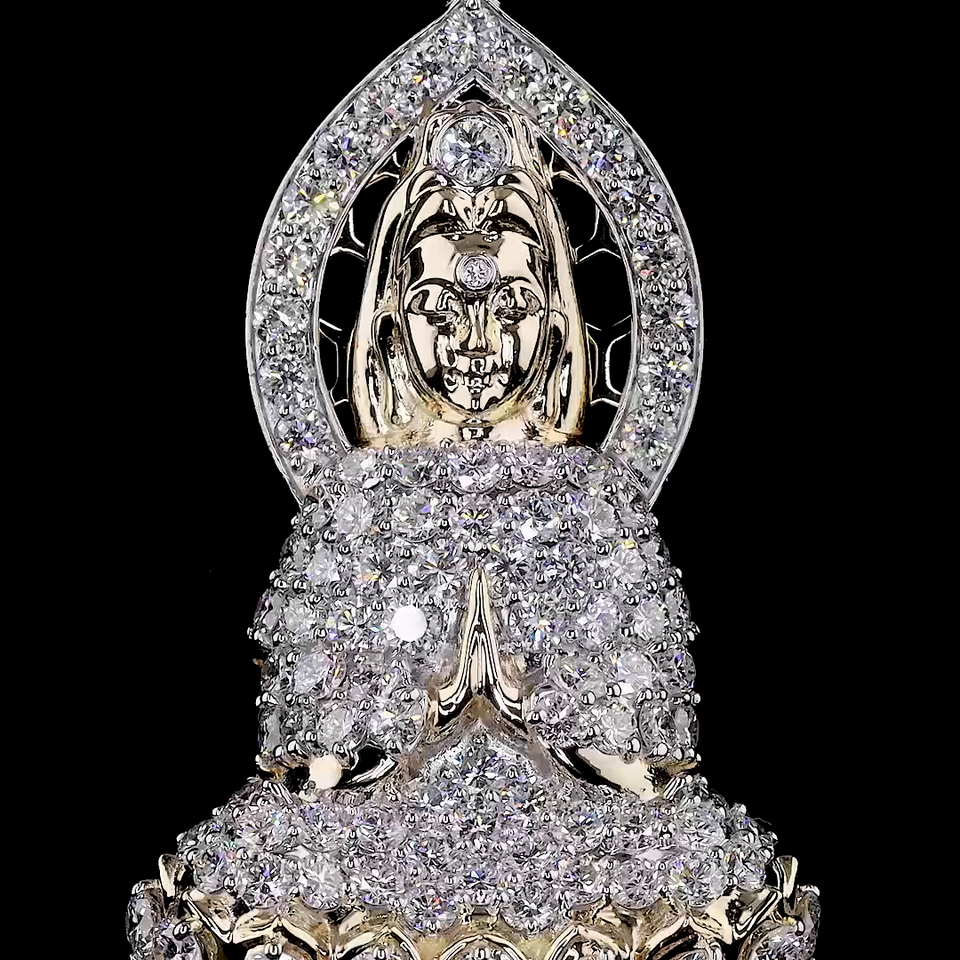 Pendentif Bouddha en or massif 14 carats rose/jaune/blanc plaqué rhodium avec diamant de laboratoire de 4,6 carats certifié IGI, pour femme, religieux