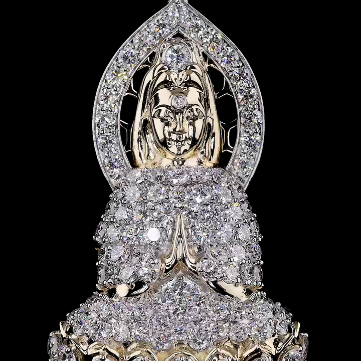 Pendentif Bouddha en or massif 18 carats rose/jaune/blanc avec diamant de laboratoire de 4,6 carats
