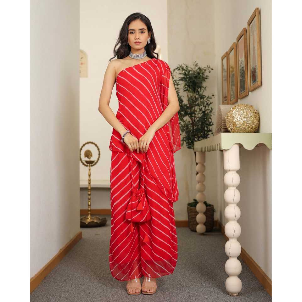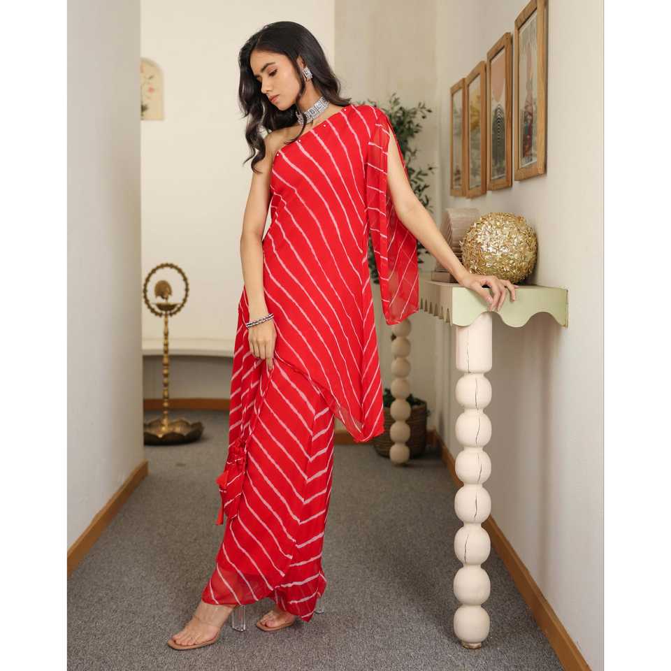 Ensemble Kurta Rouge Asymétrique Lorient pour Usage Quotidien, Taille XS, Coupe Ample et Transparente, Service de Traitement Manuel