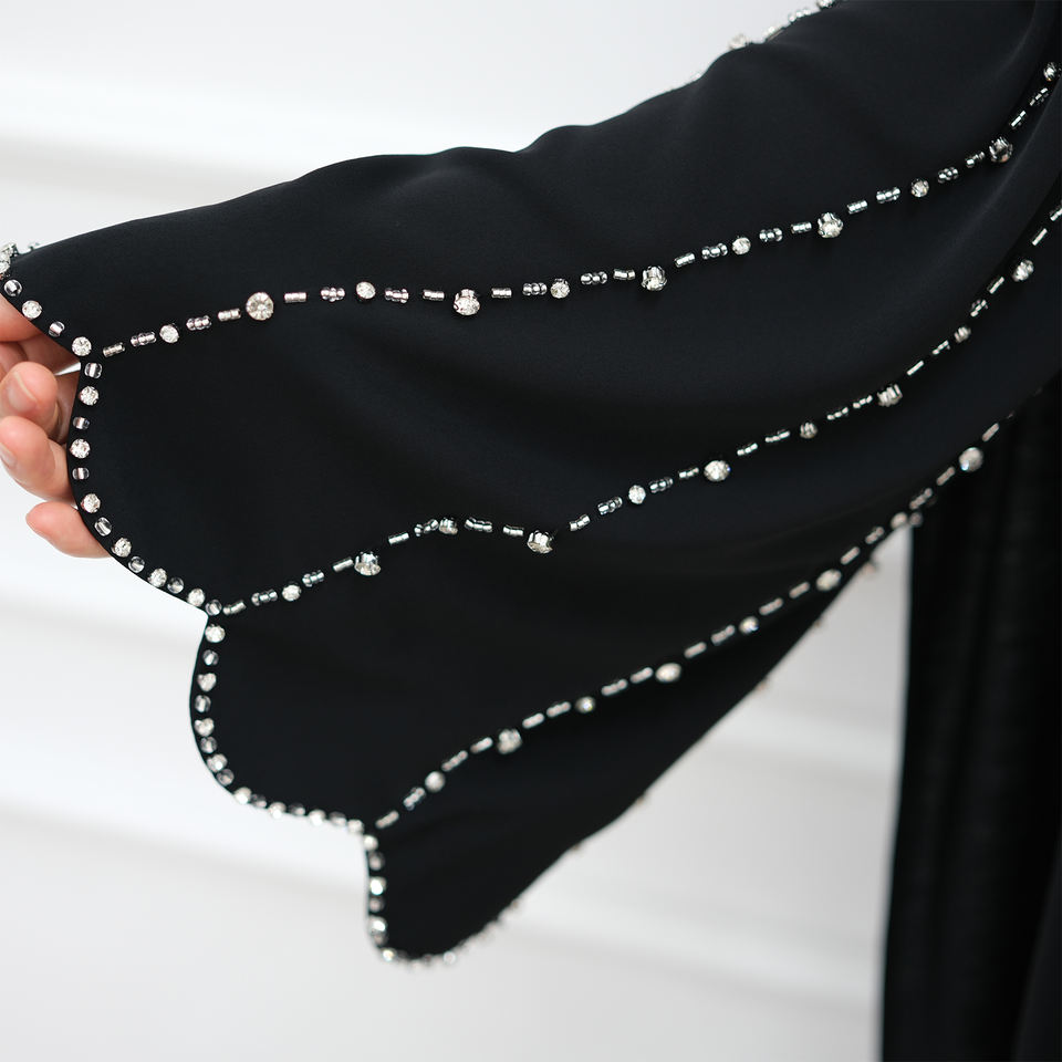 Product name:Luxury Black Abaya Women Muslim Dress Diamond Beaded Cardigan