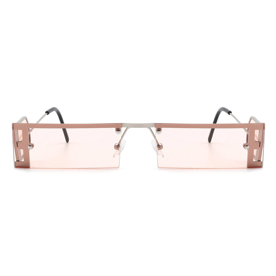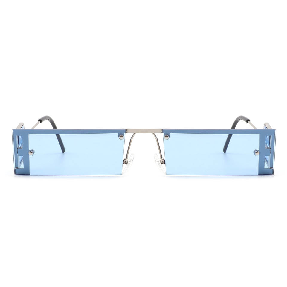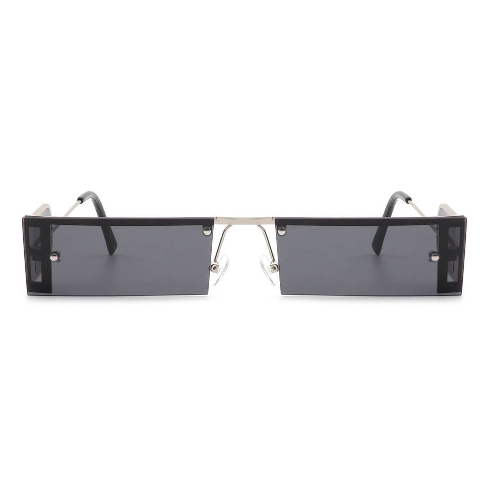 Loro - Lunettes de soleil rectangulaires rétro étroites et fines à monture plate teintée