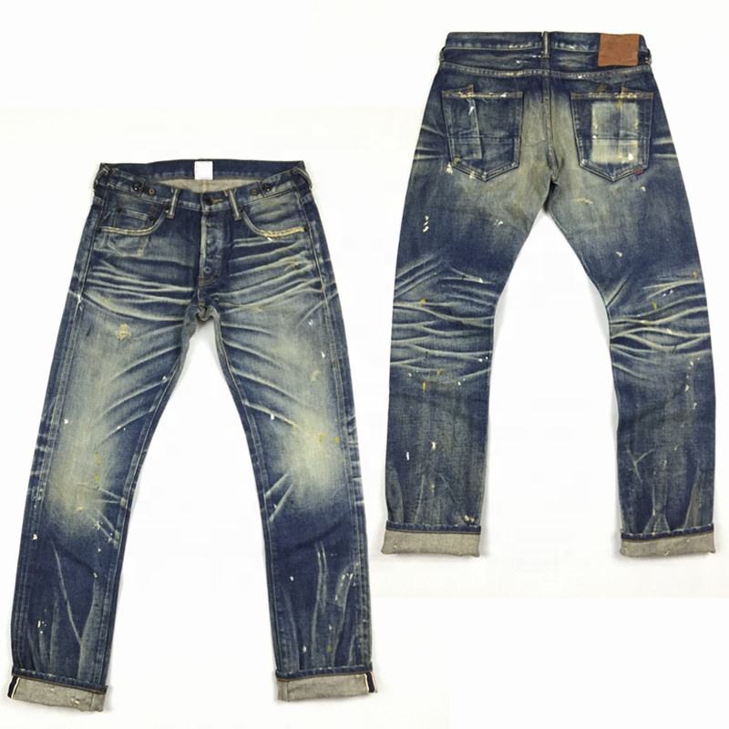 Nom du produit:Jean selvedge japonais vintage de haute qualité, délavé et vieilli.