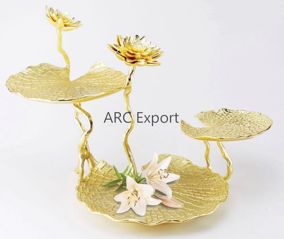 Bol de décoration alimentaire en aluminium plaqué or Lotus Design pour les fêtes de mariage et d'hôtel