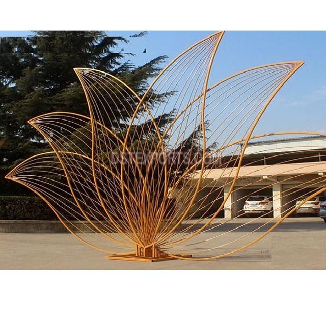 Supports métalliques dorés en forme de fleur de Lotus pour décoration de mariage, cadre métallique décoratif