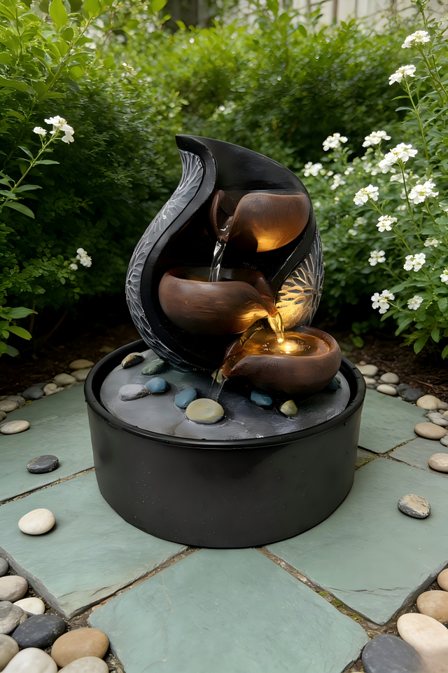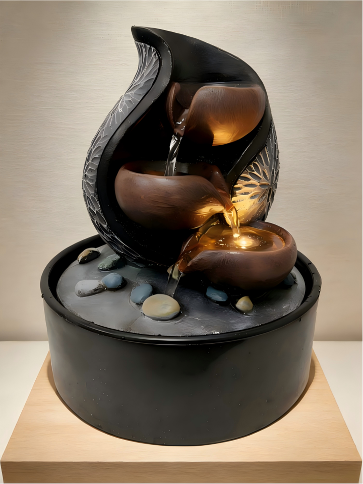 Fontaine d'intérieur à motif de lotus avec pierres de rivière