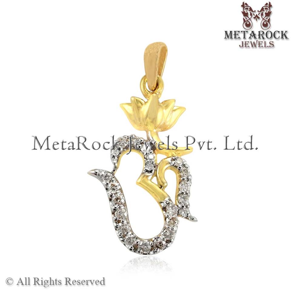 Pendentif Lotus naturel diamant pavé OM pendentif I 14k or jaune fait à la main bijoux OM cadeau pour maman ed pendentif Om unisexe