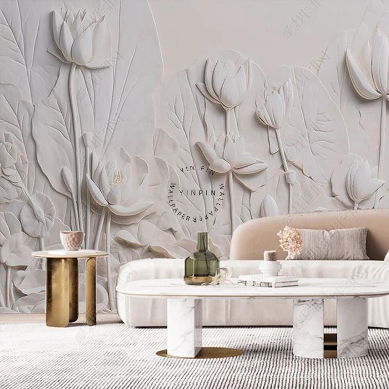 Lotus relief mur 8d pierre papier peint texturé décoration de la maison