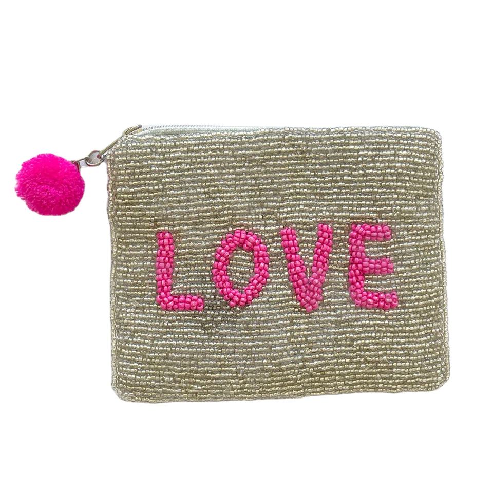 Pochette de monnaie en perles de graine de conception d'amour faite à la main portefeuille accessoire à la mode personnalisé avec fermeture à glissière