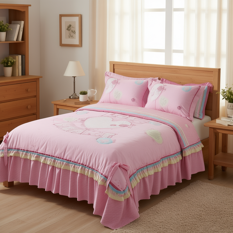 Couette double Love à ressorts avec 2 oreillers, garnissage en polyester imprimé, literie moderne pour la maison