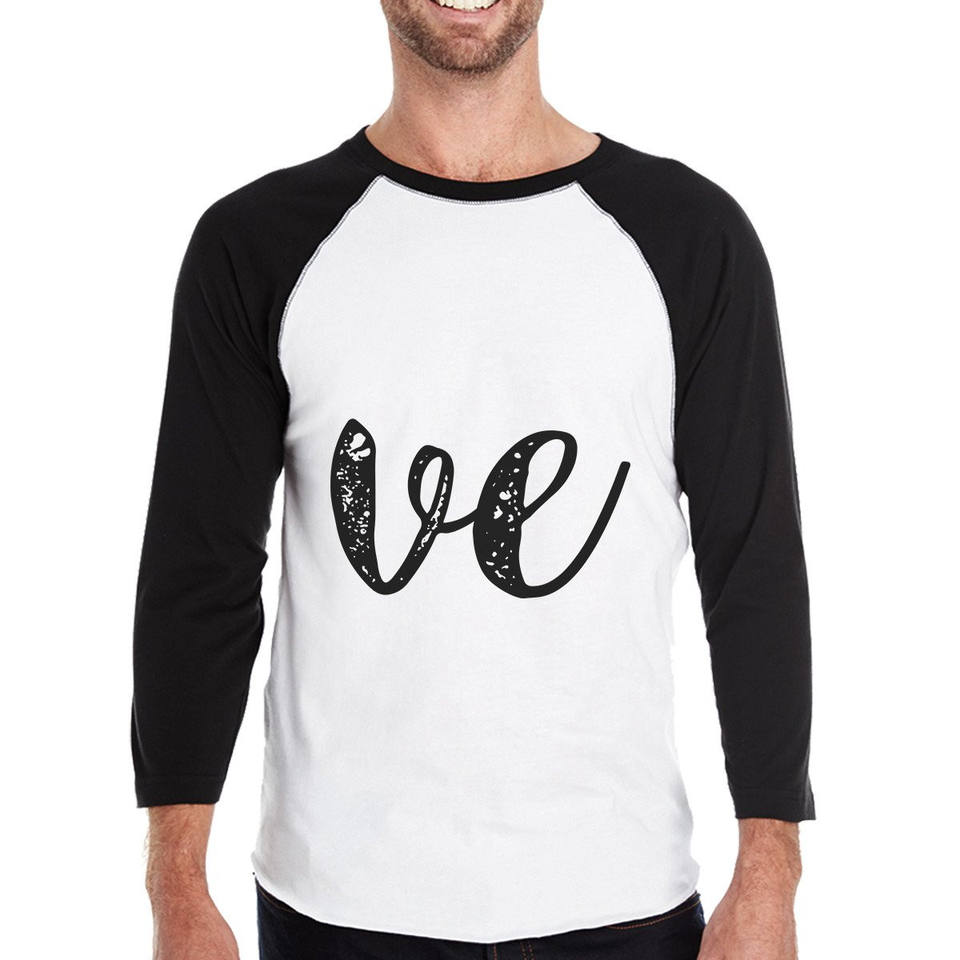 Men's Black and White Baseball Shirt with Love Heart Family-Dad Design