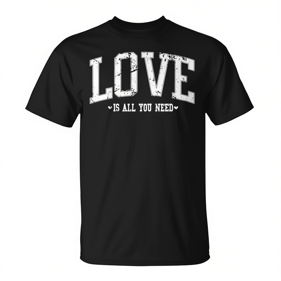 T-shirt promotionnel style universitaire vieilli « Love Is All You Need »