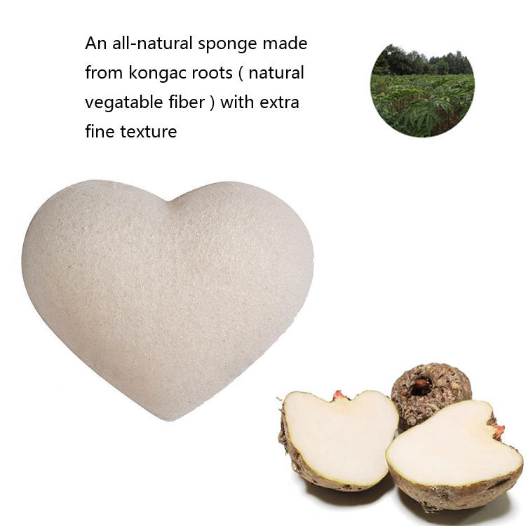 Éponge Konjac en forme de cœur pour le visage, exfoliante, 100% naturelle, pour le nettoyage du visage, emballage personnalisé, naturelle et biologique