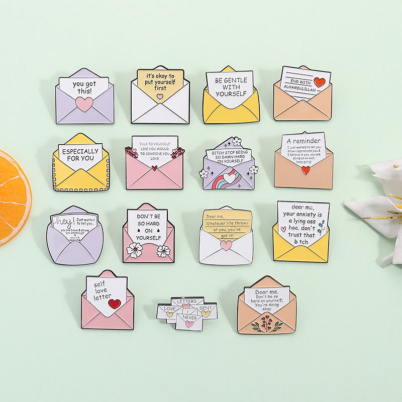 Aimez-vous émail broche Encouragement texte broche enveloppe conception revers Badge bijoux cadeau pour les amis