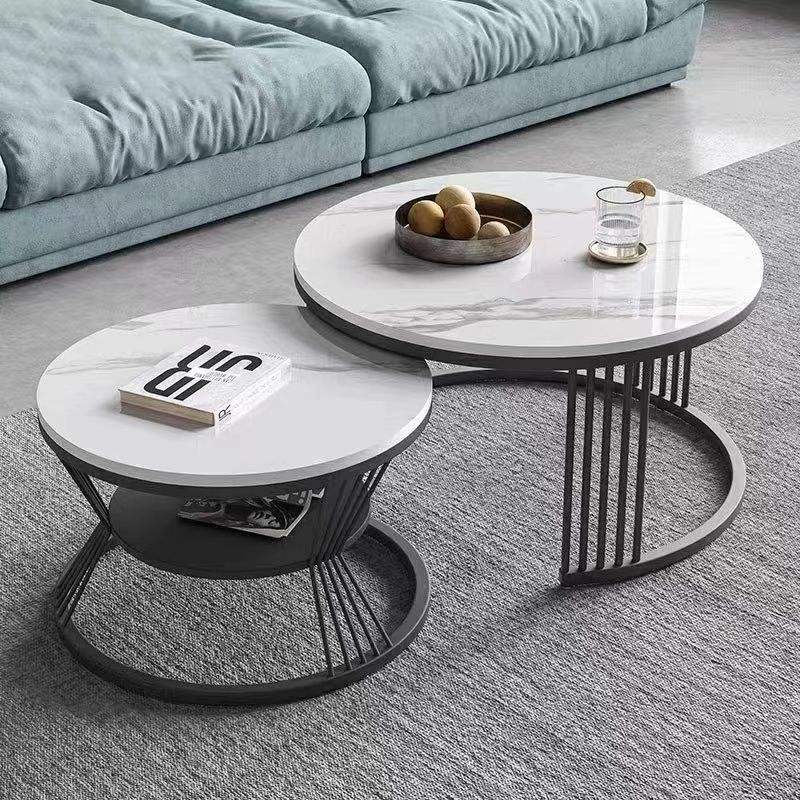 Love Zone Table basse gigogne en pierre d'ardoise de marbre personnalisée cadre en métal 3-5 ans de garantie Table d'appoint de salon moderne