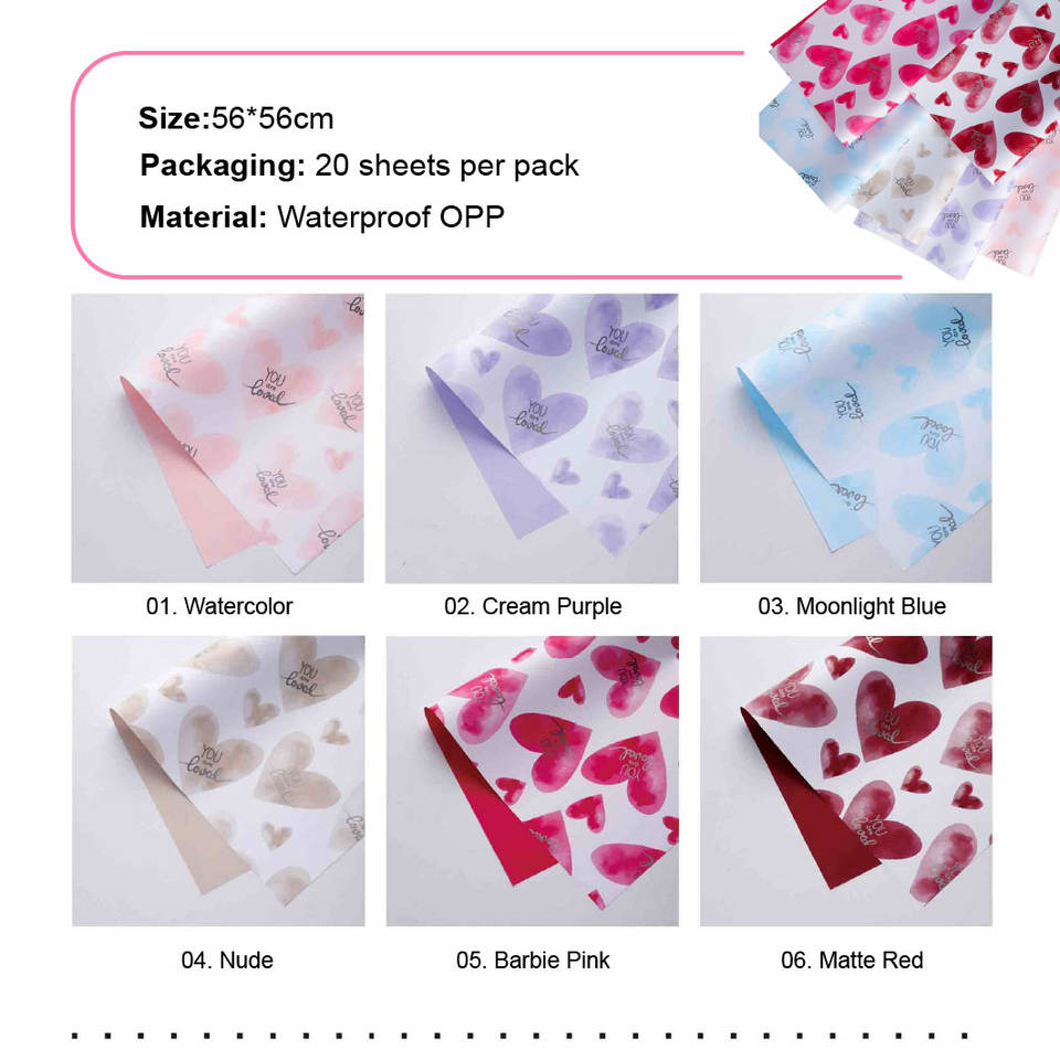 Amour à l'Première Vue, Papier Ouya Imperméable à Motif Cœur | Papier d'emballage pour bouquet de la Saint-Valentin