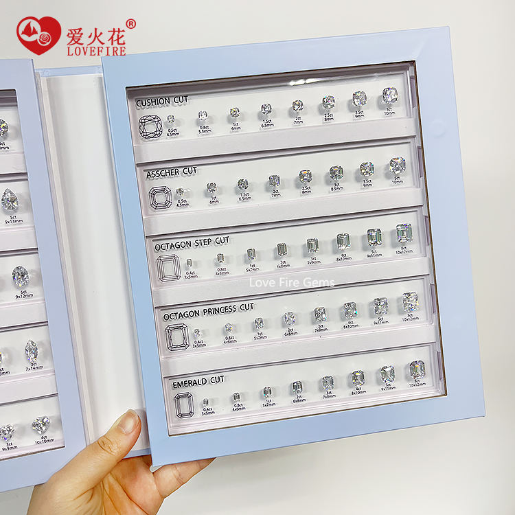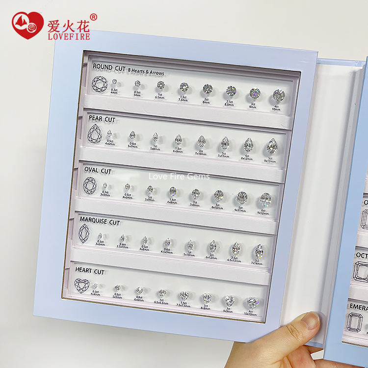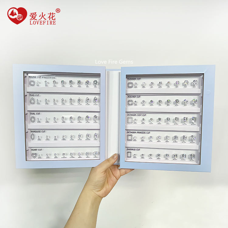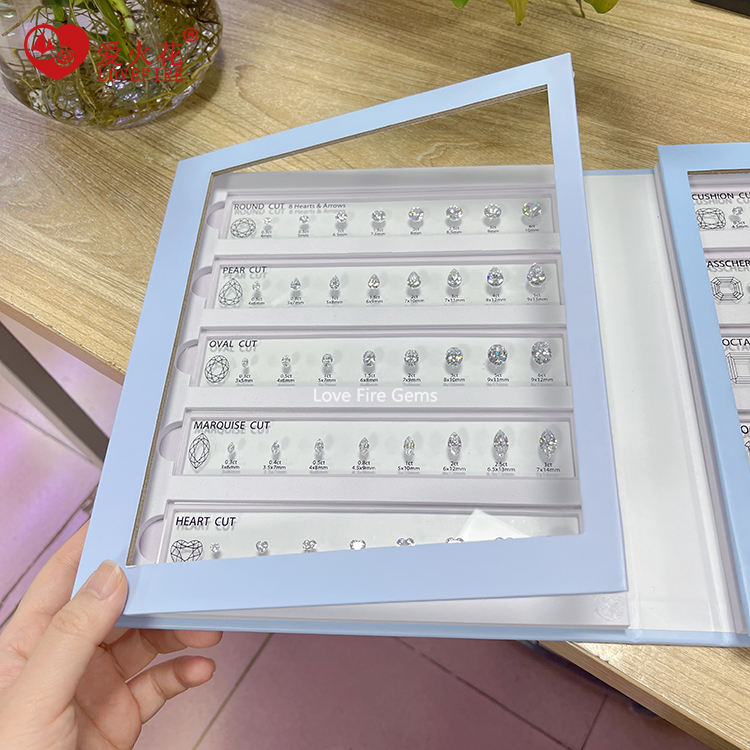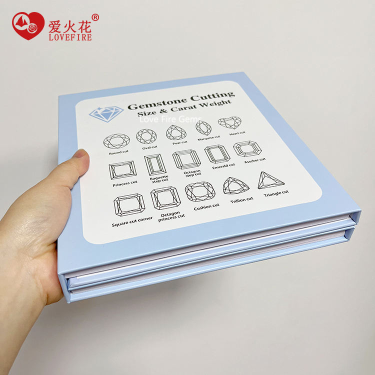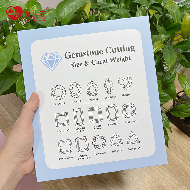 LoveFireGems outil de référence de pierres précieuses différentes coupe diamant carat taille tableau de comparaison blanc CZ diamant maître ensemble