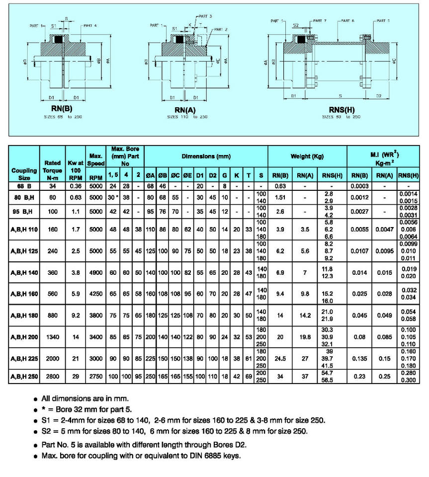 Size 68 to 250Numéro de Type
