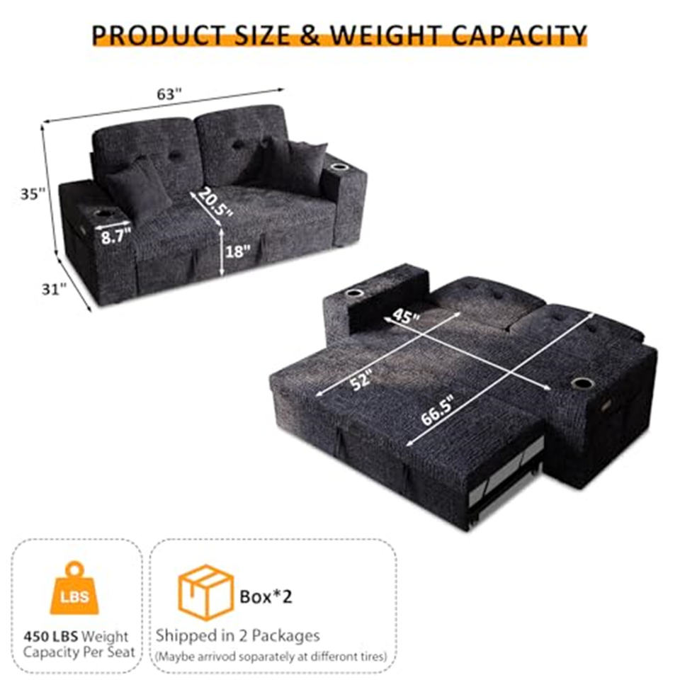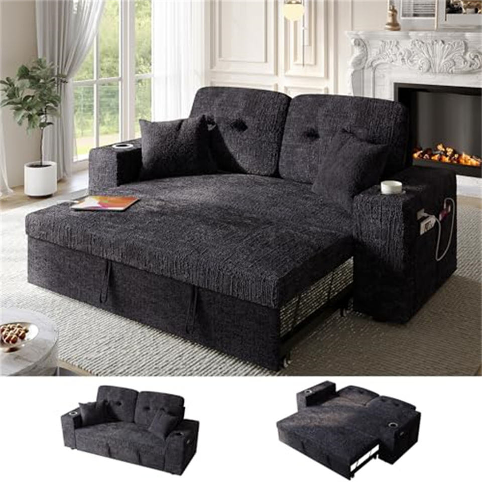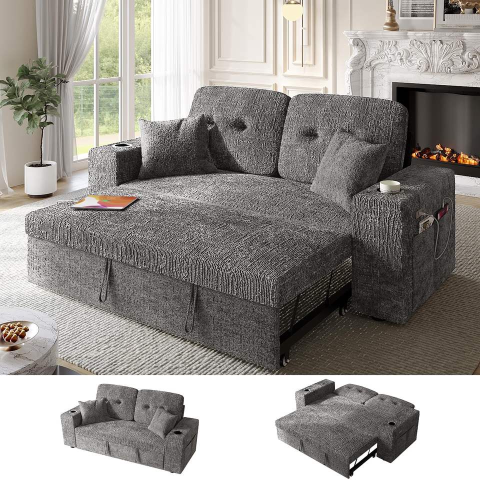 Canapé-lit Loveliving 4 en 1, canapé-lit convertible, petit canapé avec accoudoirs larges, charge USB