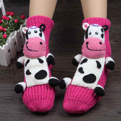 Belle conception 3D dessin animé singe hiver intérieur épais chaussettes chaussettes de couchage pour les femmes