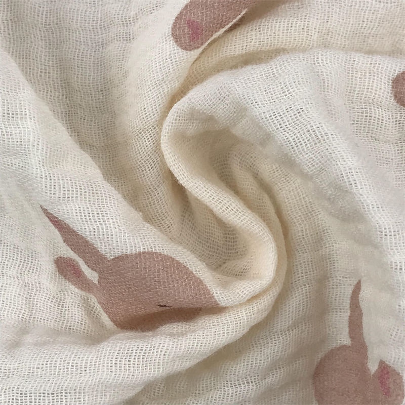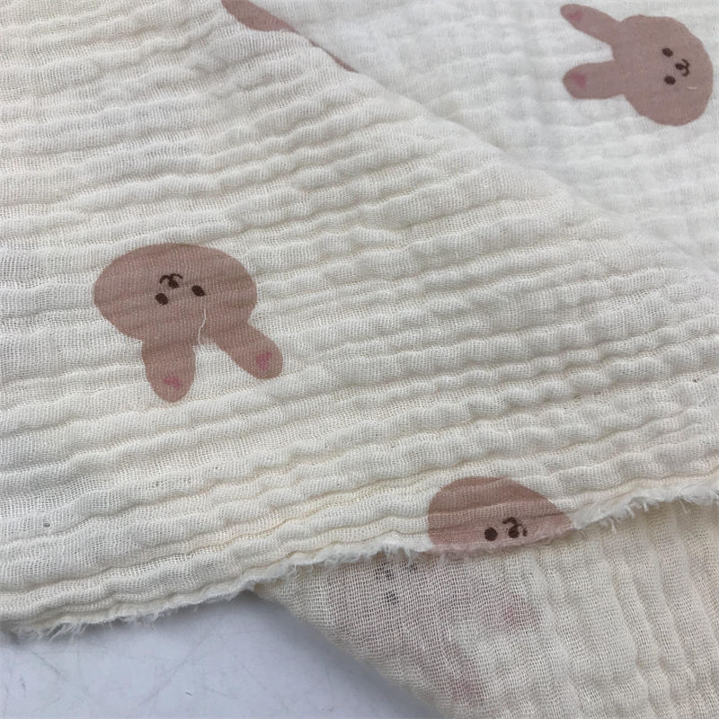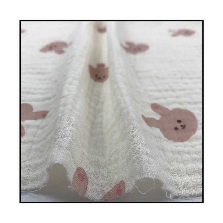 Tissu en mousseline double gaze à imprimé numérique en forme de petit cœur, 99% polyester, 1% filament conducteur, fil peigné, pour serviettes et ameublement
