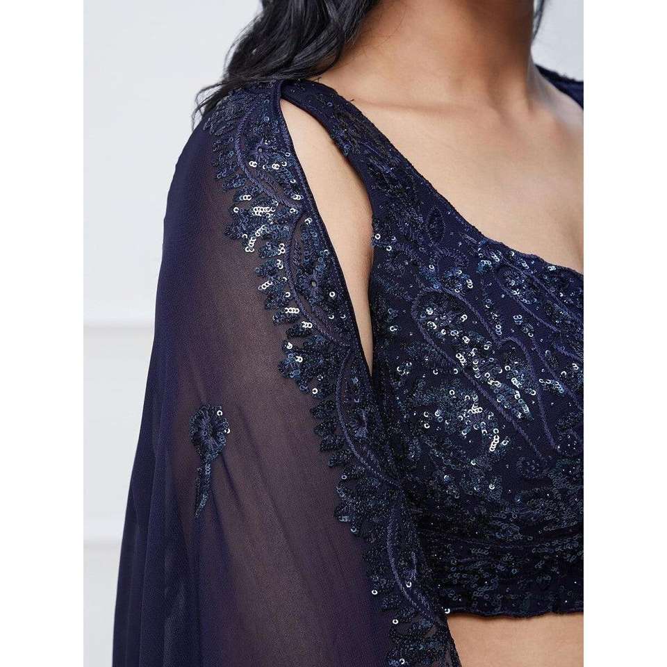 Lovely Navy Blue Sequins Georgette Engagement Wear Lehenga Choli